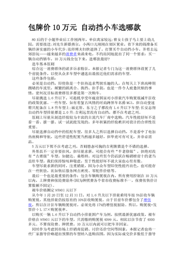 包牌價(jià)10萬(wàn)元 自動(dòng)擋小車選哪款