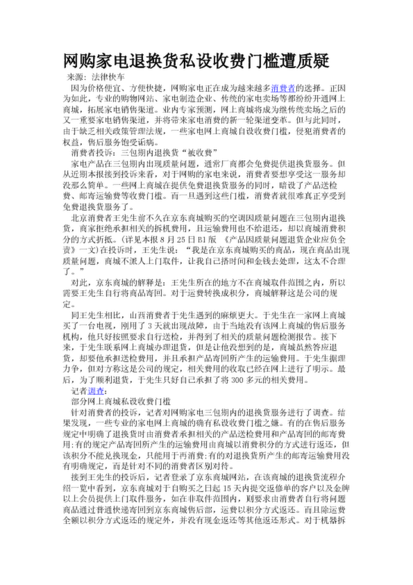 網(wǎng)購家電退換貨私設(shè)收費(fèi)門檻遭質(zhì)疑
