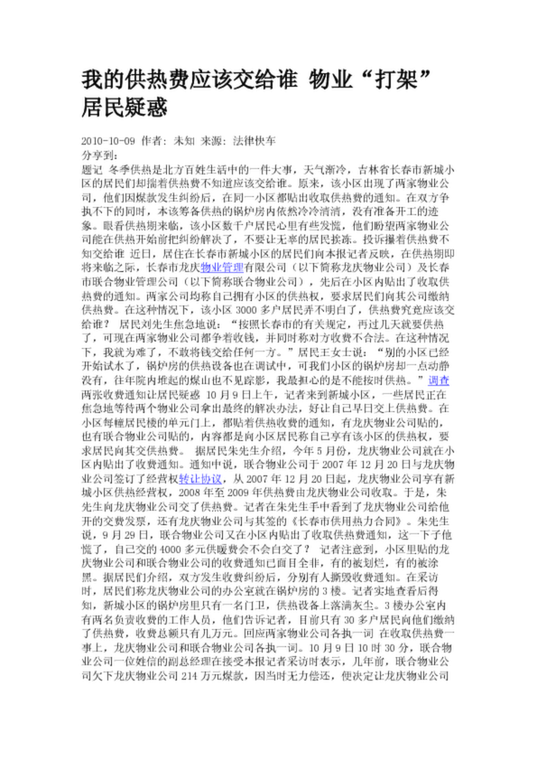 我的供熱費(fèi)應(yīng)該交給誰 物業(yè)“打架”居民疑惑