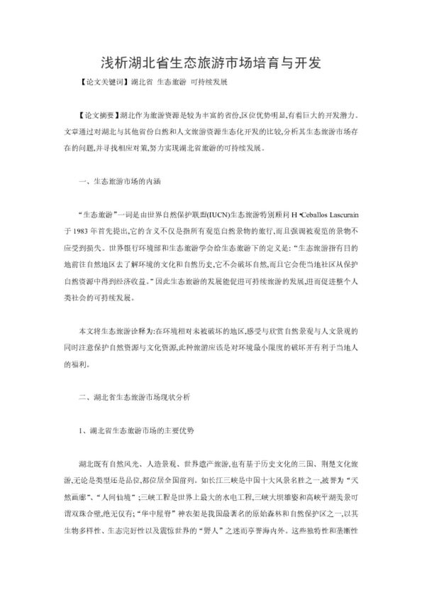 淺析湖北省生態(tài)旅游市場(chǎng)培育與開發(fā)