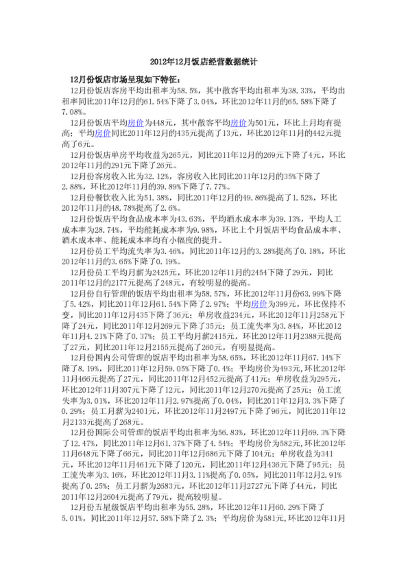 2012年12月飯店經(jīng)營(yíng)數(shù)據(jù)統(tǒng)計(jì)